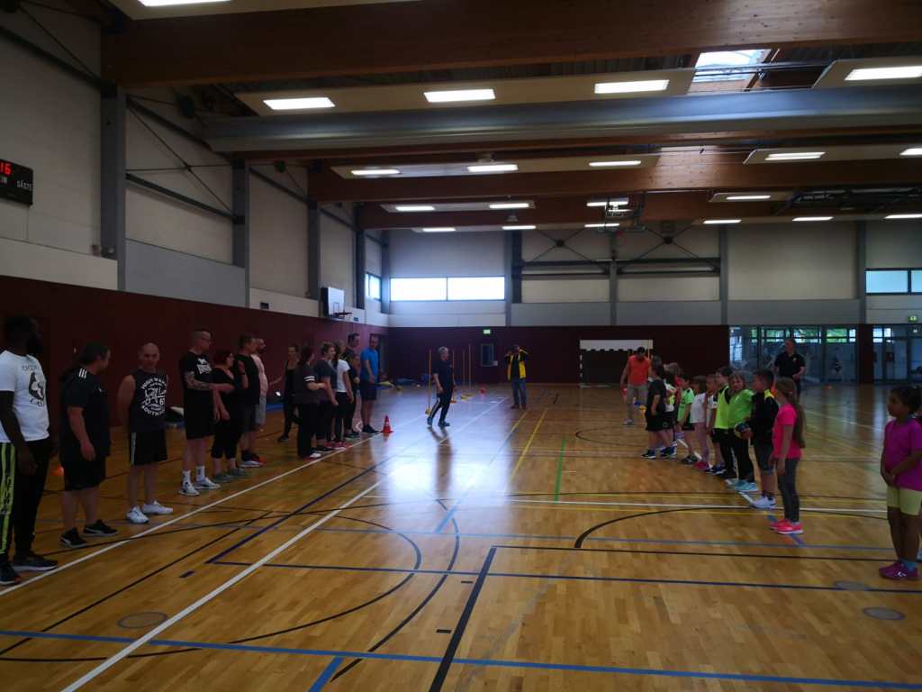 Nach intensiven Trainingseinheiten am Vor- und Nachmittag kamen gegen 16:00 Uhr die Eltern dazu, um gemeinsame Staffelspiele und ein Eltern-Kind-Turnier zu veranstalten. Die Staffelspiele konnten unsere Kiddies gewinnen und auch beim anschließenden Handballspiel staunten die Erwachsenen, was die Kinder schon so drauf haben.