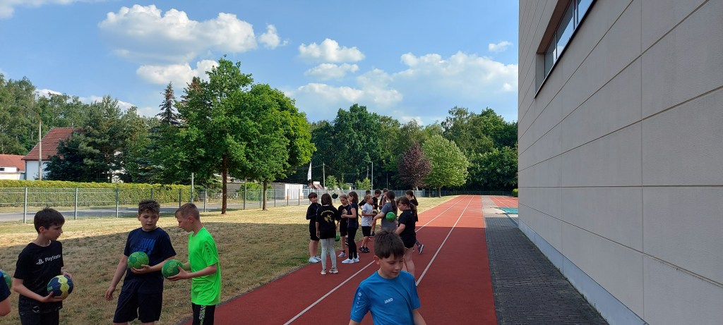 Bevor es das langersehnte Abendbrot vom Grill gab, mussten die Kinder sich im Handballspiel Eltern gegen Kinder nochmal beweisen.