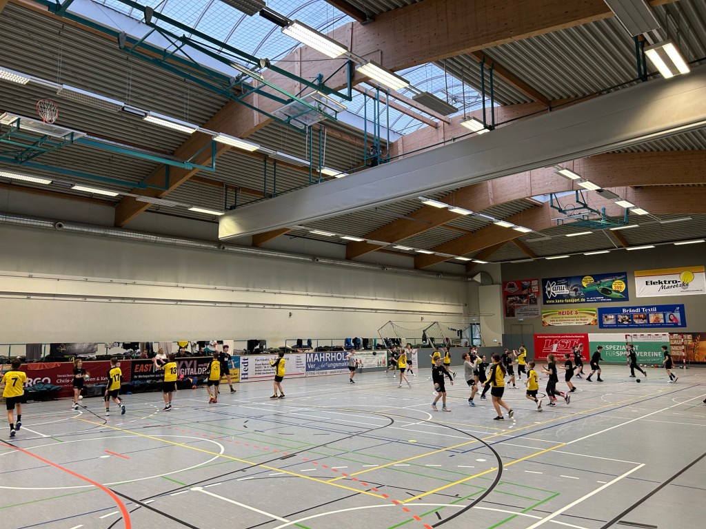 Nach einem lockeren gemeinsamen Aufwärmen spielten wir insgesamt 4×15 Minuten gegeneinander. Dabei zeigte unsere Mannschaft insgesamt eine sehr ordentliche Leistung. Besonders im Angriff gelangen uns immer wieder schön herausgespielte Tore. Auch in der Abwehr hielten wir sehr gut dagegen, wobei auch deutlich wurde, woran wir in der kommenden Zeit arbeiten müssen.