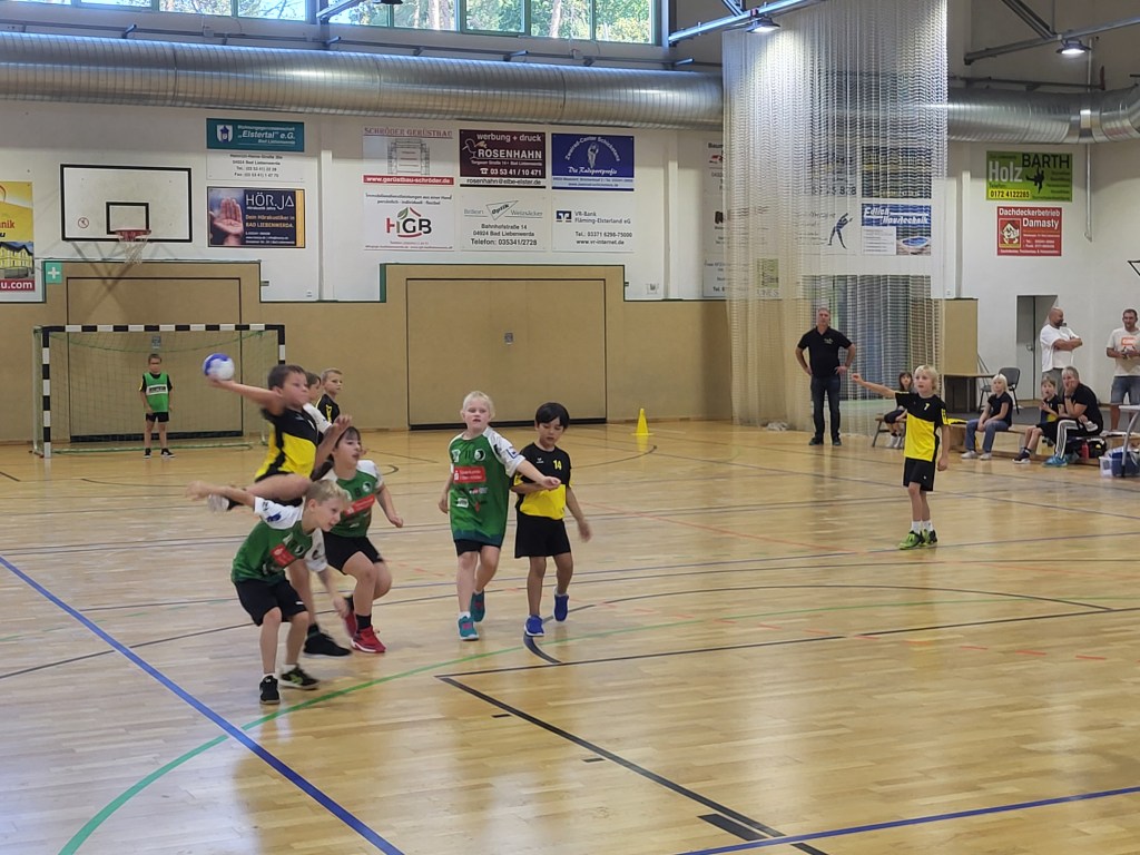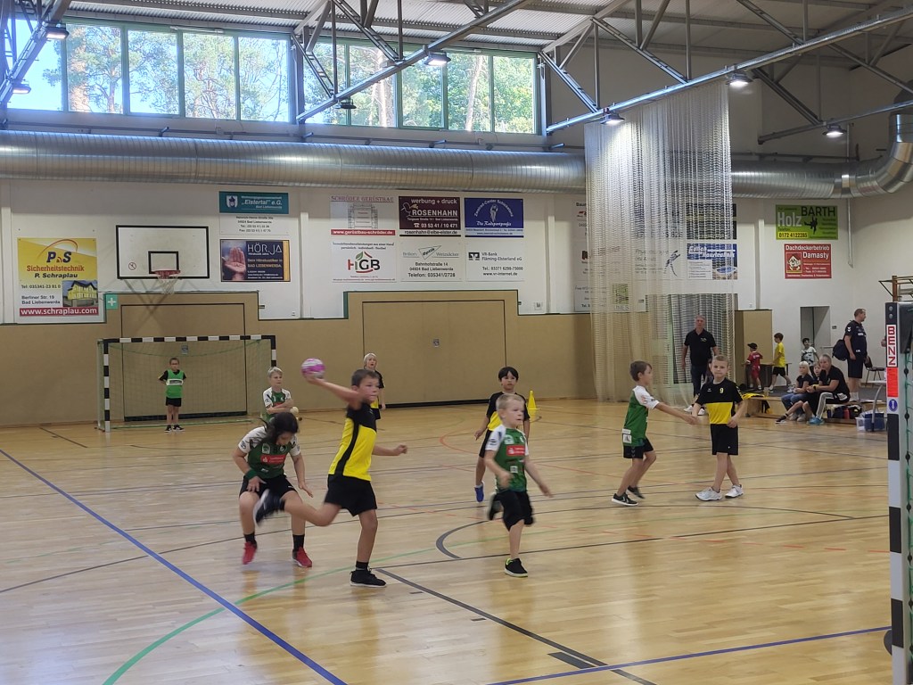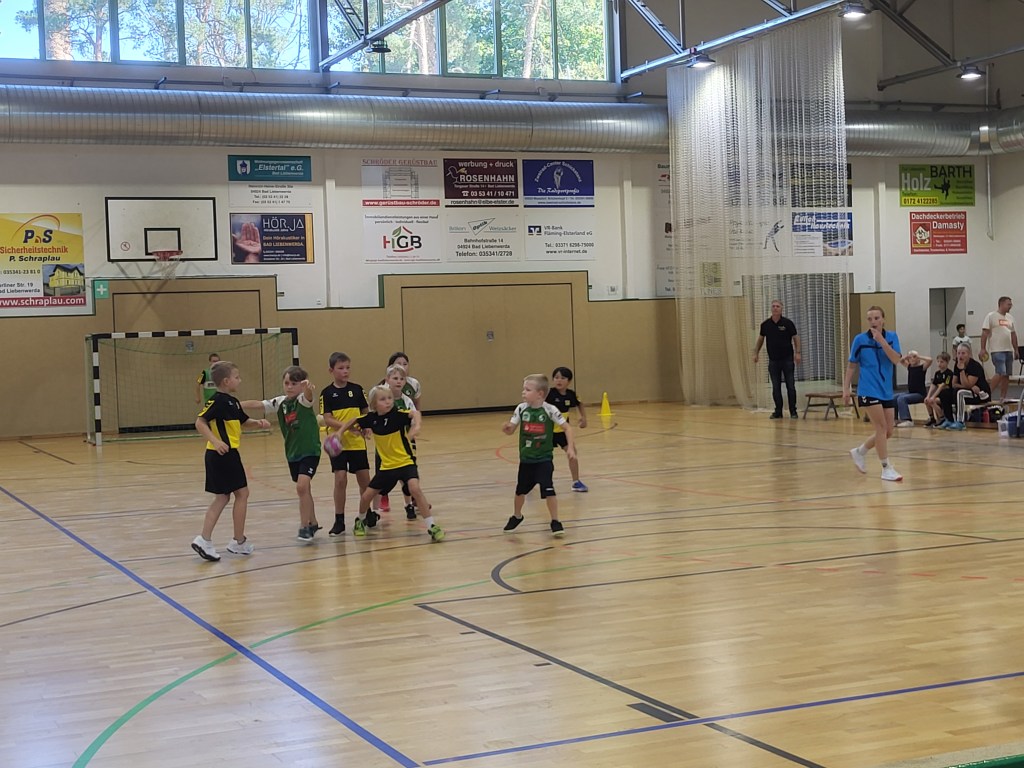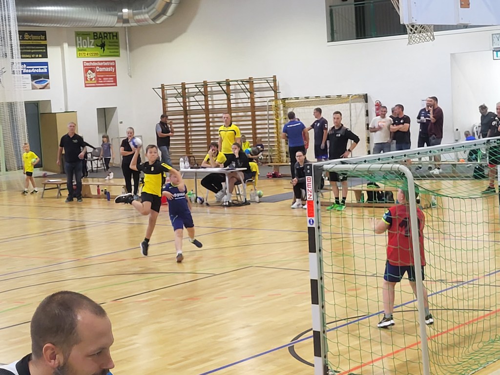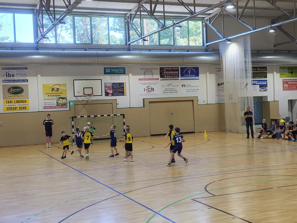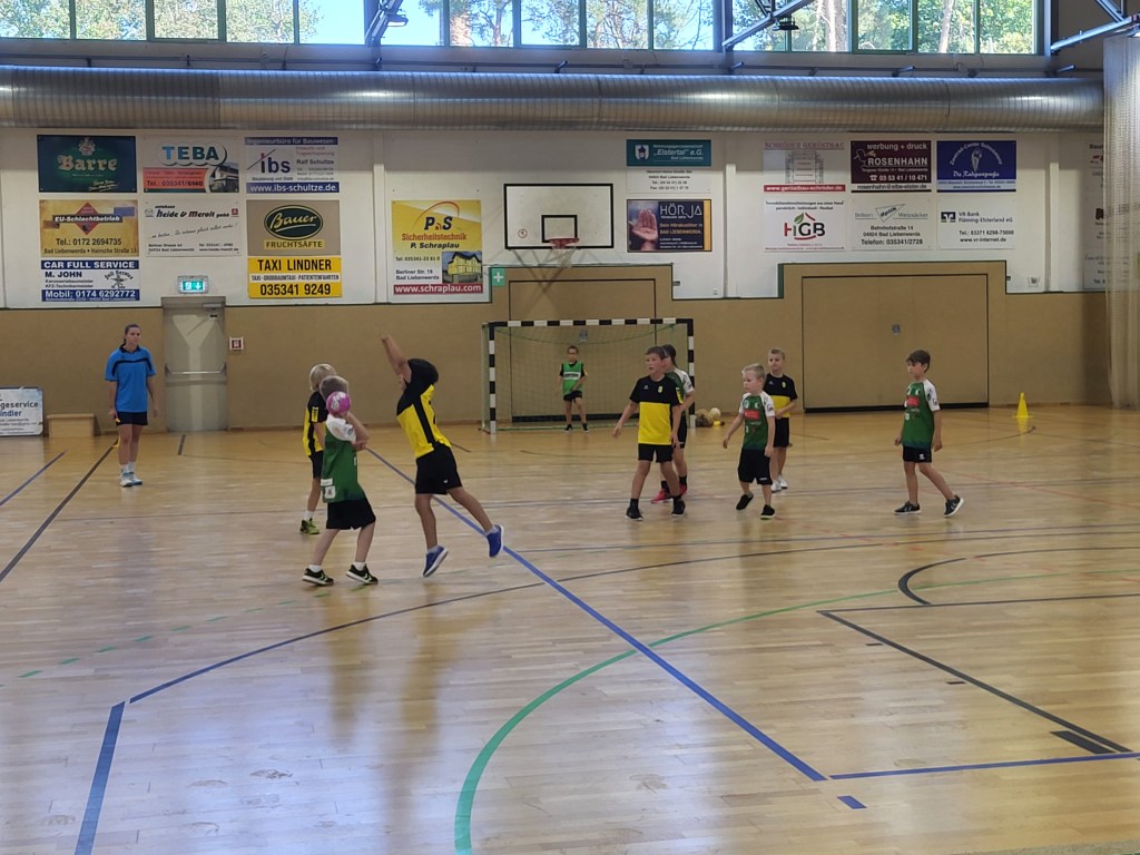 Zuerst ging es gegen den Elsterwerdaer SV 94. Obwohl es das erste Spiel der Saison war, konnte man bei beiden Mannschaften schon ein besseres Ball- und Spielverständnis erkennen. So konnten die mitgereisten Eltern schon gute Angriffe, eine tolle Abwehrleistung mit vielen herausgefangenen Bällen und super Paraden im Tor feiern. Das Spiel war in weiten Teilen ausgeglichen und nach einer spannenden ersten Halbzeit ging es mit einer knappen 9:8 Führung in die Halbzeit. Von der Führung beflügelt ließen sich unsere Jungs den Vorsprung in der zweiten Halbzeit nicht mehr nehmen und konnten am Ende den ersten Sieg beim ersten Spiel mit 20:16 feiern.