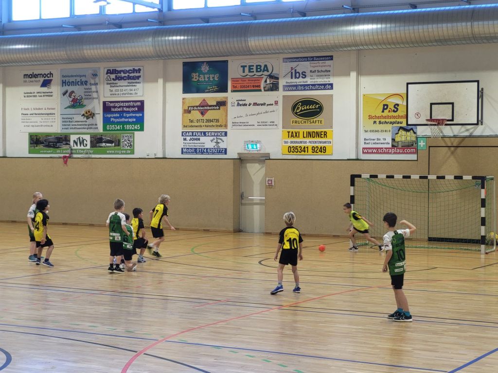 Heute war unsere männliche F Jugend Mannschaft zu Gast in Bad Liebenwerda. Während wir gegen den SV Herzberg einen eindeutigen Sieg nach Hause nehmen konnten führte der Beginn der Grippesaison dazu, dass viele Mannschaften gar nicht antreten konnten. Deshalb fiel unser gegen HC Bad Liebenwerda III angesetztes Spiel leider aus. Da auch das zweite Spiel für den HC Bad Liebenwerda I ausfiel, fand kurzerhand noch ein Trainingsspiel zwischen unseren beiden Mannschaften statt.