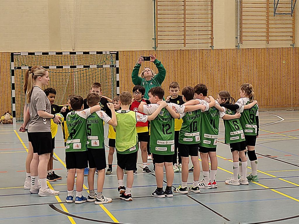 Gegen Herzberg war unser Team dann hellwach. In dem sehr schnellen Spiel standen unsere Spieler sowohl im Angriff, als auch in der Abwehr sehr gut. Die Mannschaft zeigte eine tolle Abwehr- und Torwartleistung und auch die Angriffe waren schön anzusehen. Im Gegensatz zum vorhergehenden Spiel wurden die Torchancen vor allem mit tollen Abgaben und gutem Zusammenspiel statt durch starke Einzelleistungen erarbeitet. So ging es gegen die gut spielende Mannschaft aus Herzberg mit einer 14:9 Führung in die Halbzeitpause. Auch in der zweiten Hälfte blieb das Team konzentriert und ließ nicht nach, sodass sie die Führung sogar zu einem starken 30:19 Sieg ausbauen konnten.