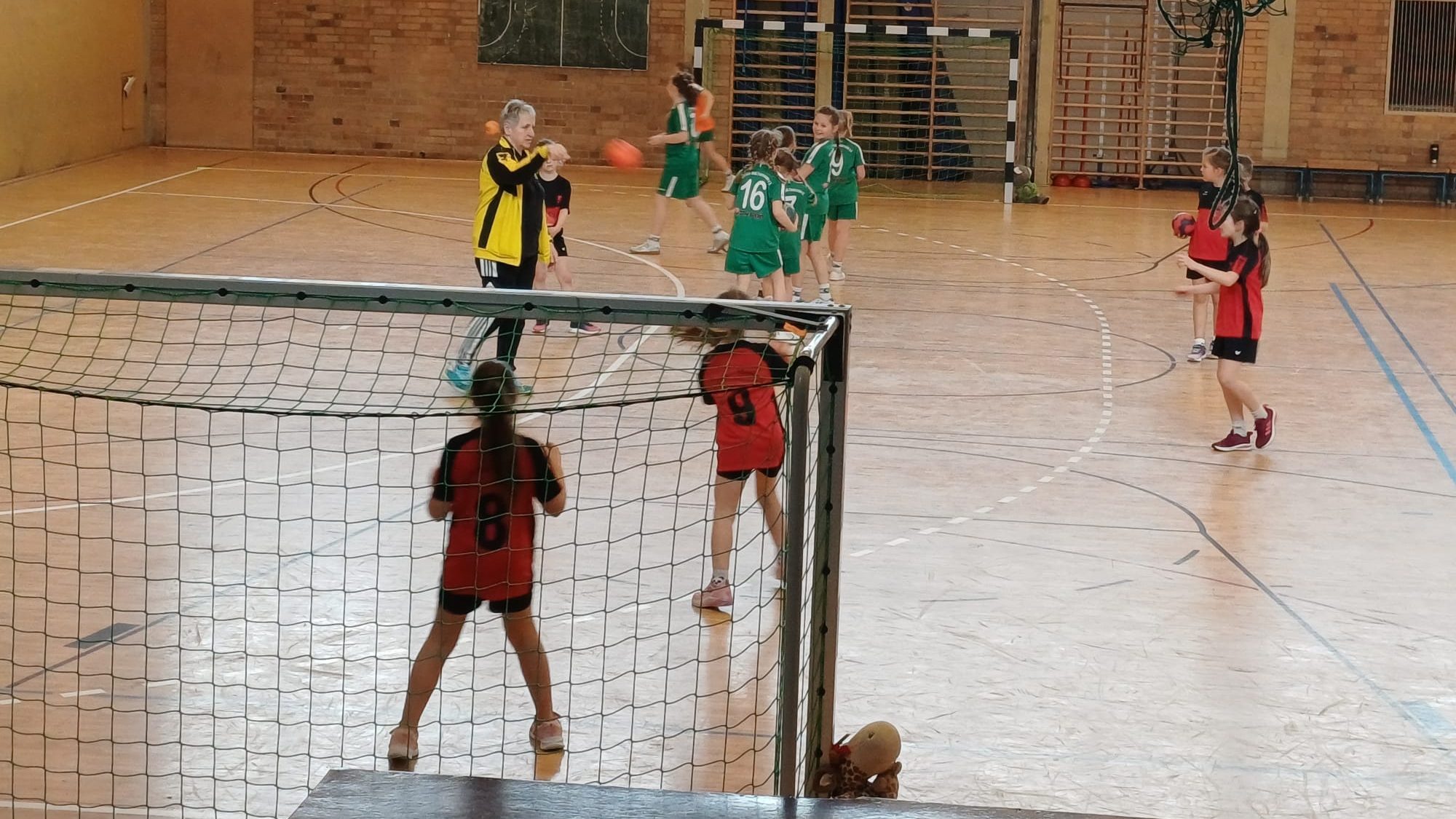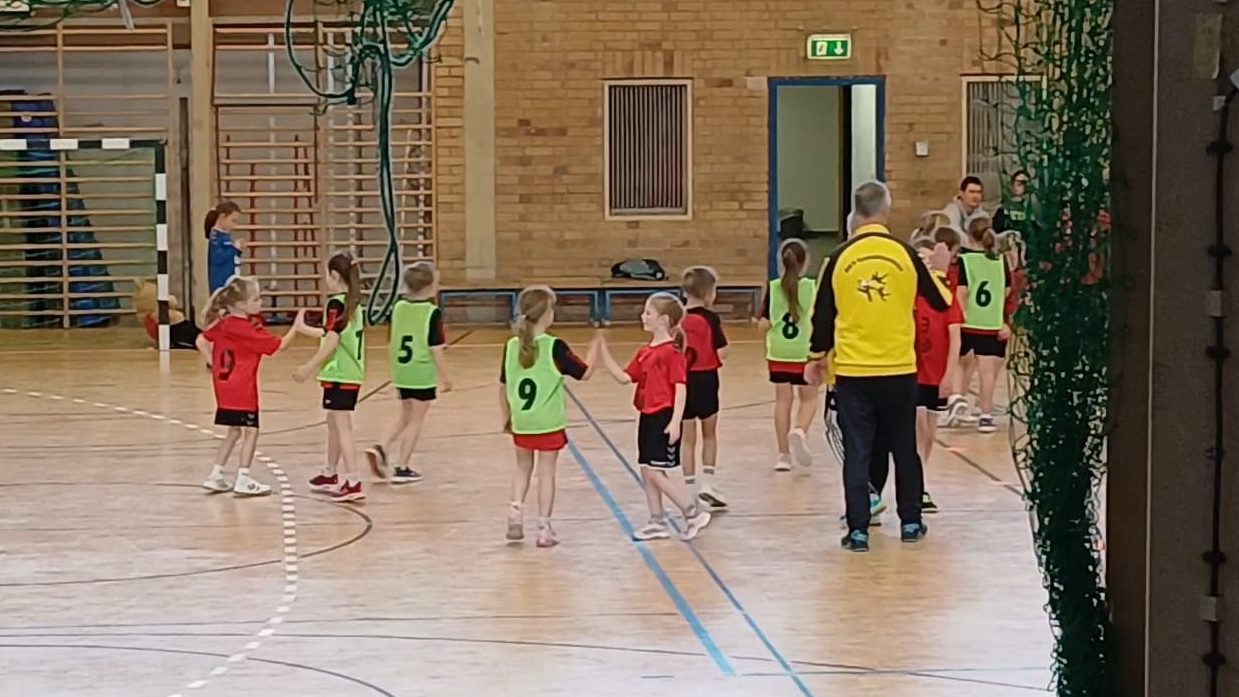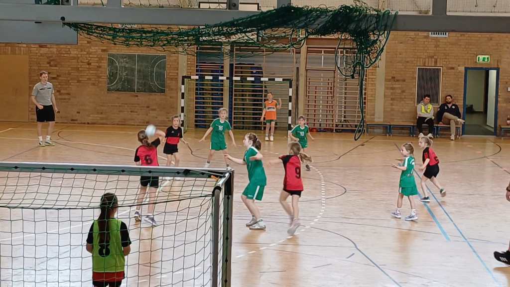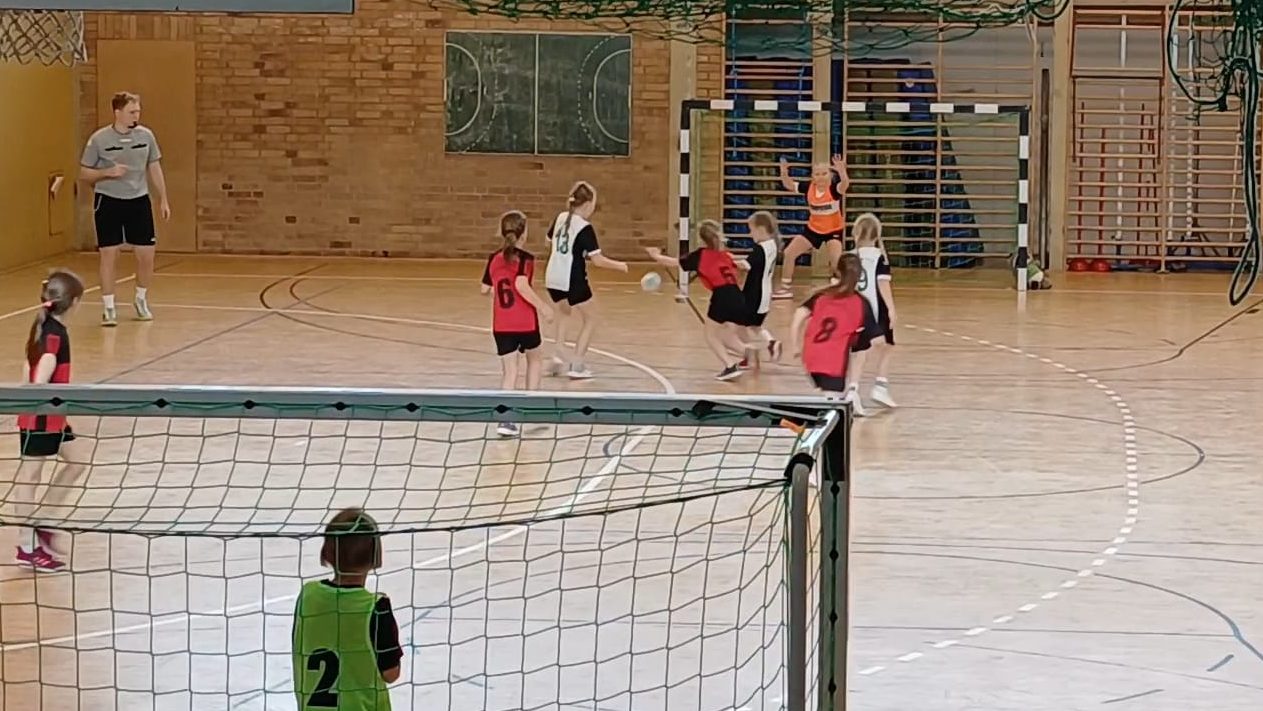 Der Auftakt gegen die zweite Vertretung aus Finsterwalde verlief zunächst sehr ausgeglichen. Dank einer starken Torverteidigung und einer geringen Fehlerquote im Passspiel hielten wir die Partie zur Halbzeit mit 3:4 relativ offen. In der zweiten Halbzeit ließen die Defensivbemühungen jedoch nach, und viele Angriffe wurden frühzeitig geblockt. Trotz einer spannenden Endphase reichte es am Ende nicht für einen Sieg und das Spiel endete mit 8:11 für die Mädchen aus Finsterwalde.